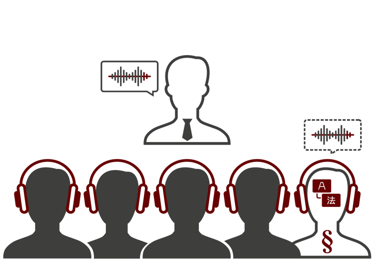 Grâce à leur professionnalisme, leurs connaissances juridiques relatives aux contenus à traduire et leurs compétences sociales, nos interprètes sont des partenaires fiables pour l'interprétation de