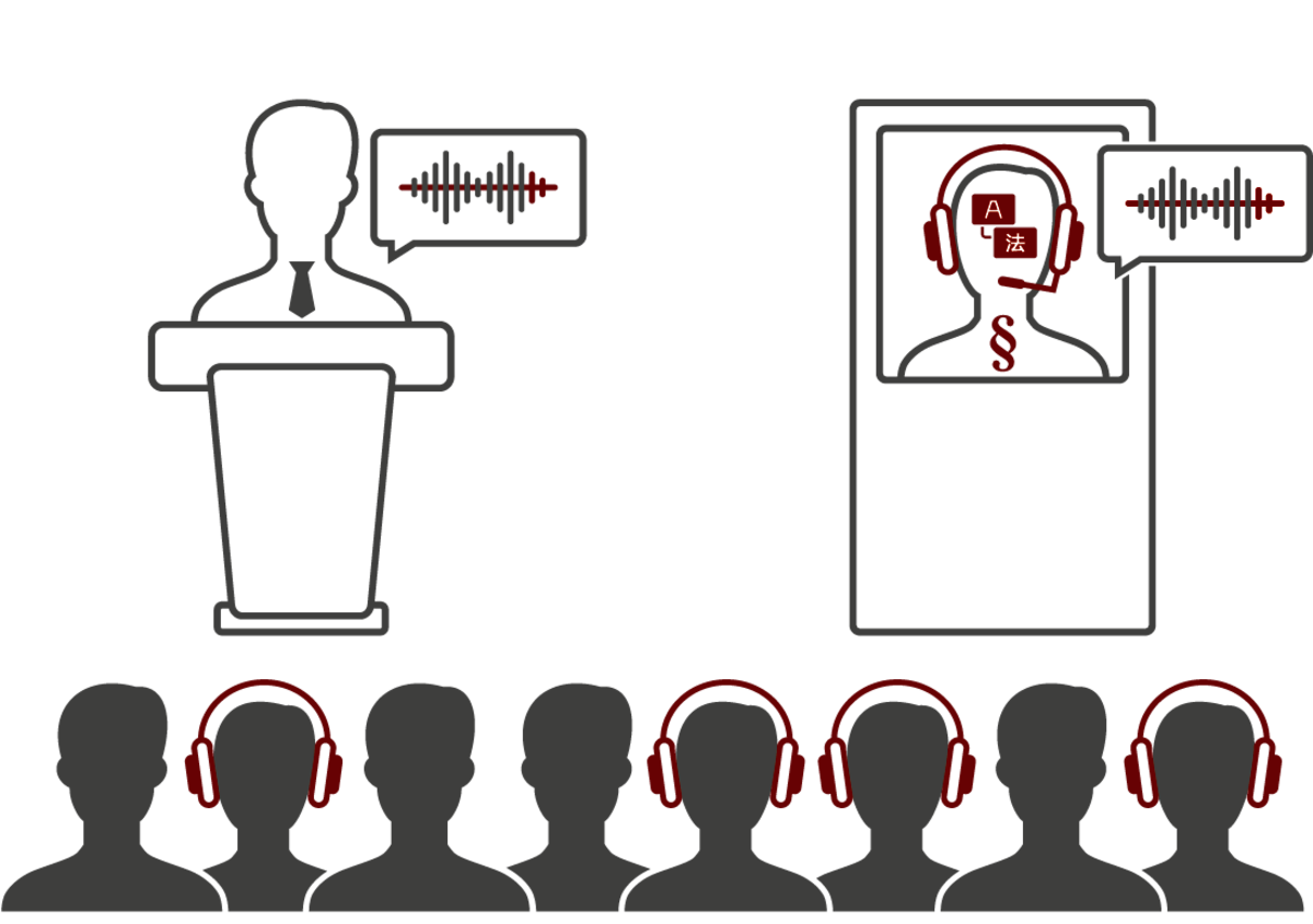Im Anschluss oder im Wechsel mit dem Redner übersetzt der Dolmetscher den jeweiligen Teil in die Zielsprache.